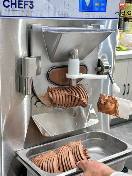 带弹性可便捷拆卸的 POM 刮刀,导热系数低、不粘料, 在生产过程中与冷冻缸紧密接触,搅拌更均匀。